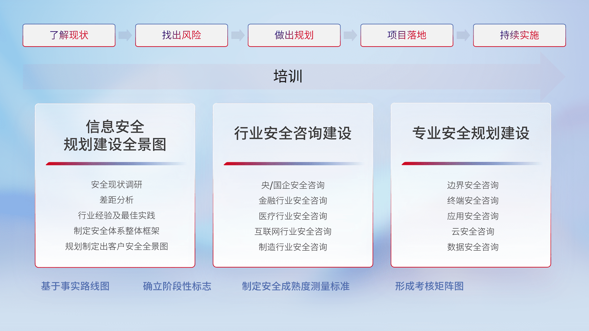 梳理客户信息安全现状调研、、、、差距分析结果,,,,结合行业先进经验及最佳实践,,,,制订客户的信息安全管控体系总结架构,,最终形成一个完整的客户信息安全规划与建设的全景图。。。