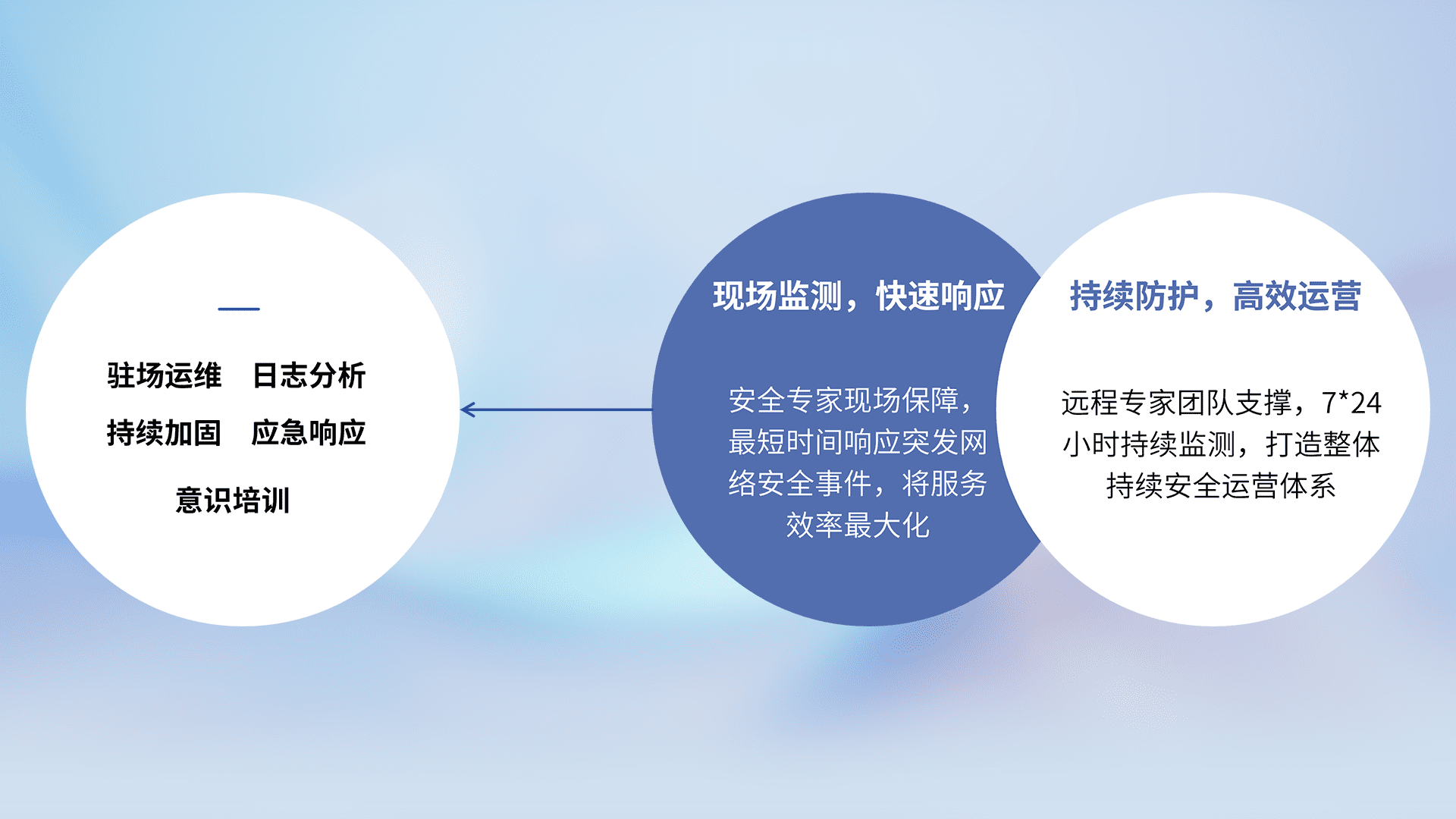 针对客户行业特性,,,提供专属的一站式安全管理服务,,帮助客户全面感知网络空间威胁,,,,通过安全专家的线上、、、、线下防护支持,,,实现风险闭环,,,将安全保障常态化,,,,为客户打造常态化安全运维运营服务。。。。